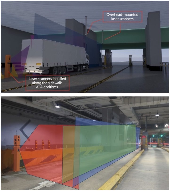 Managing vehicle traffic with little or no staff may sound unrealistic, but nowadays it’s entirely achievable. Combined with laser scanner technology, AI has been redefining how modern facilities run their traffic management. Whether it is a bustling car park, a port terminal gate, a passenger drop-off zone, a cargo loading area of an industrial campus or an exhibition venue, AI-powered traffic management systems can recognize vehicle types, calculate fees, monitor and give clear guidance on vehicle movements automatically. Compared with manual methods, they deliver a much higher level of accuracy, reliability, safety, and automation. They do not just improve the overall efficiency, they also reduce operational overheads at the same time.