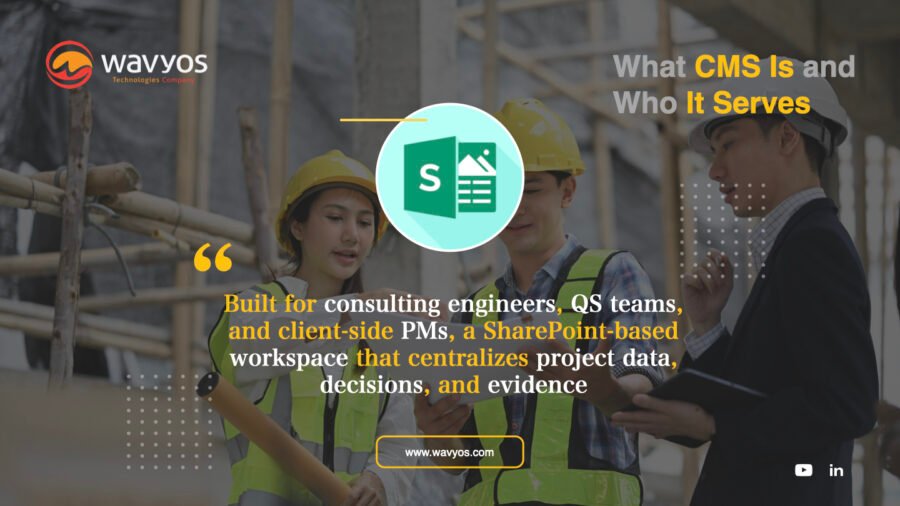 A Consultancy Management System (CMS) for engineers and quantity surveyors is a structured SharePoint workspace that centralizes project data, decisions, and evidence. It gives consulting engineers, QS teams, and client-side PMs real-time control over milestones, change/ variation impacts, and cost assurance. Why do these matter? In construction or engineering projects, milestones drive delivery and cash flow. Changes shift scope, time, and risk. Cost assurance ensures certifications remain defensible and backed by linked evidence.